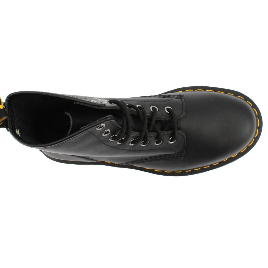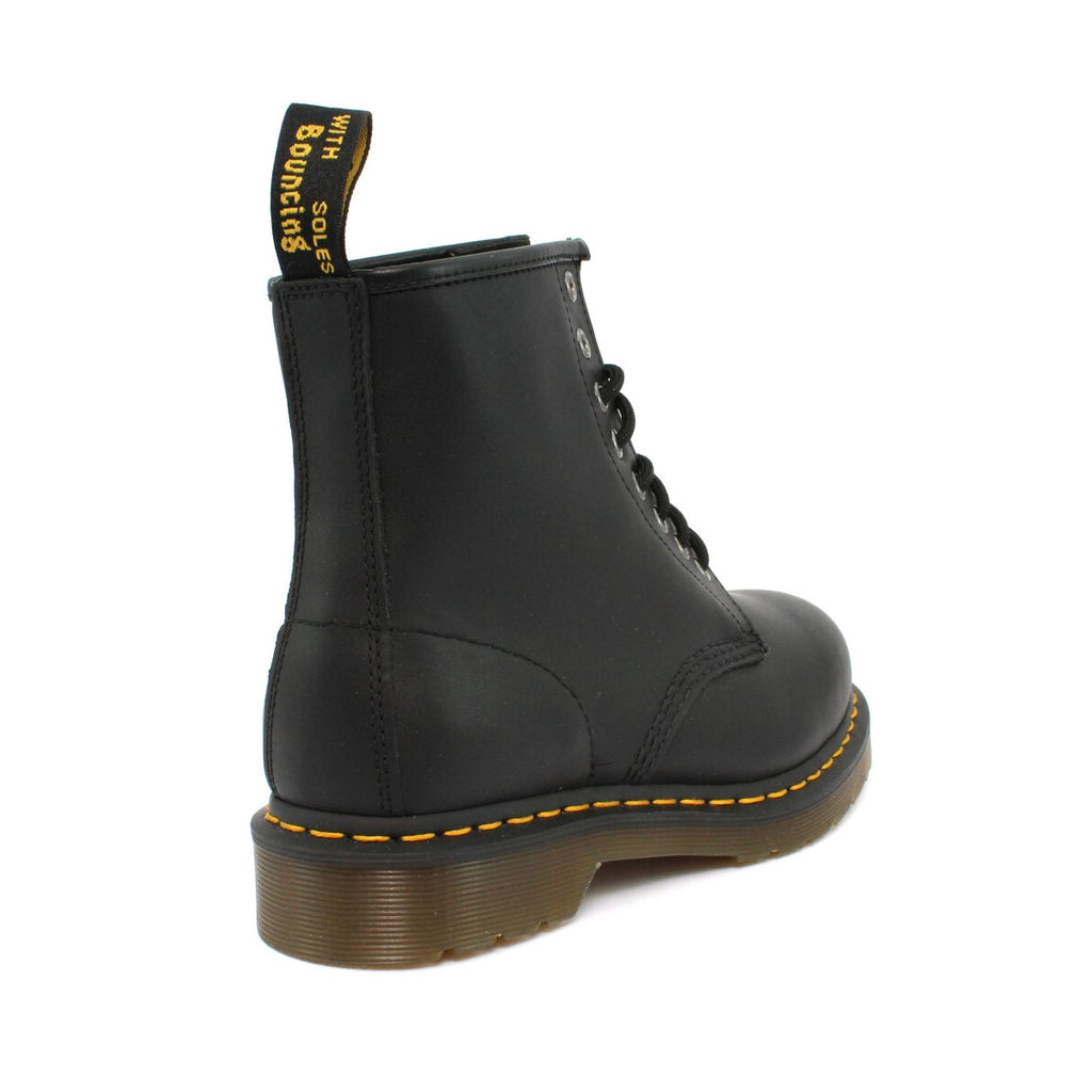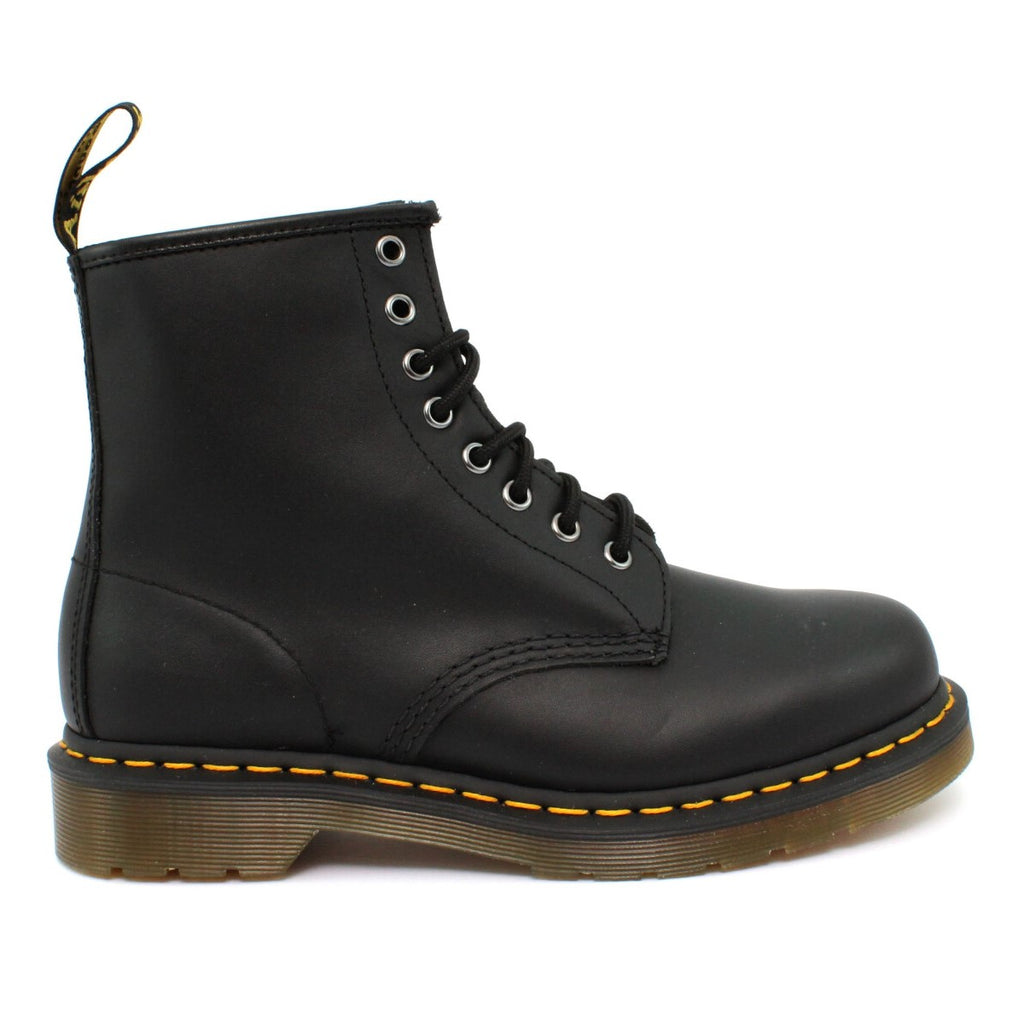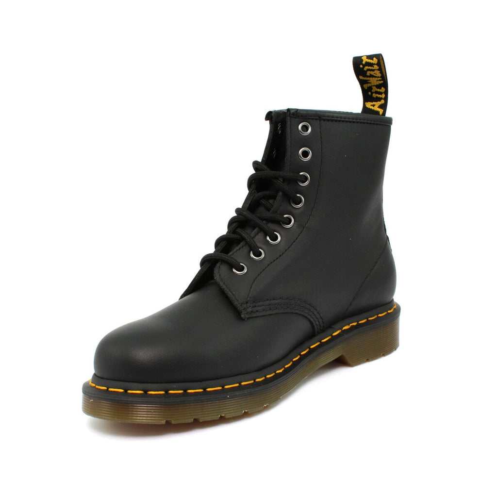 1460 è l’originale stivale Dottor Martens. Il suo DNA immediatamente riconoscibile presenta 8 occhielli, questa è la versione in morbida nappa nera, bordi scanalati, una fettuccia posteriore con logo, cuciture gialle e una confortevole suola a cuscinetto.