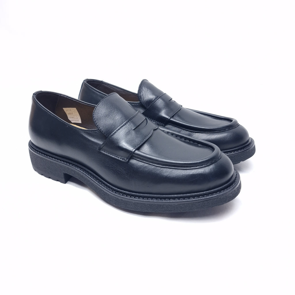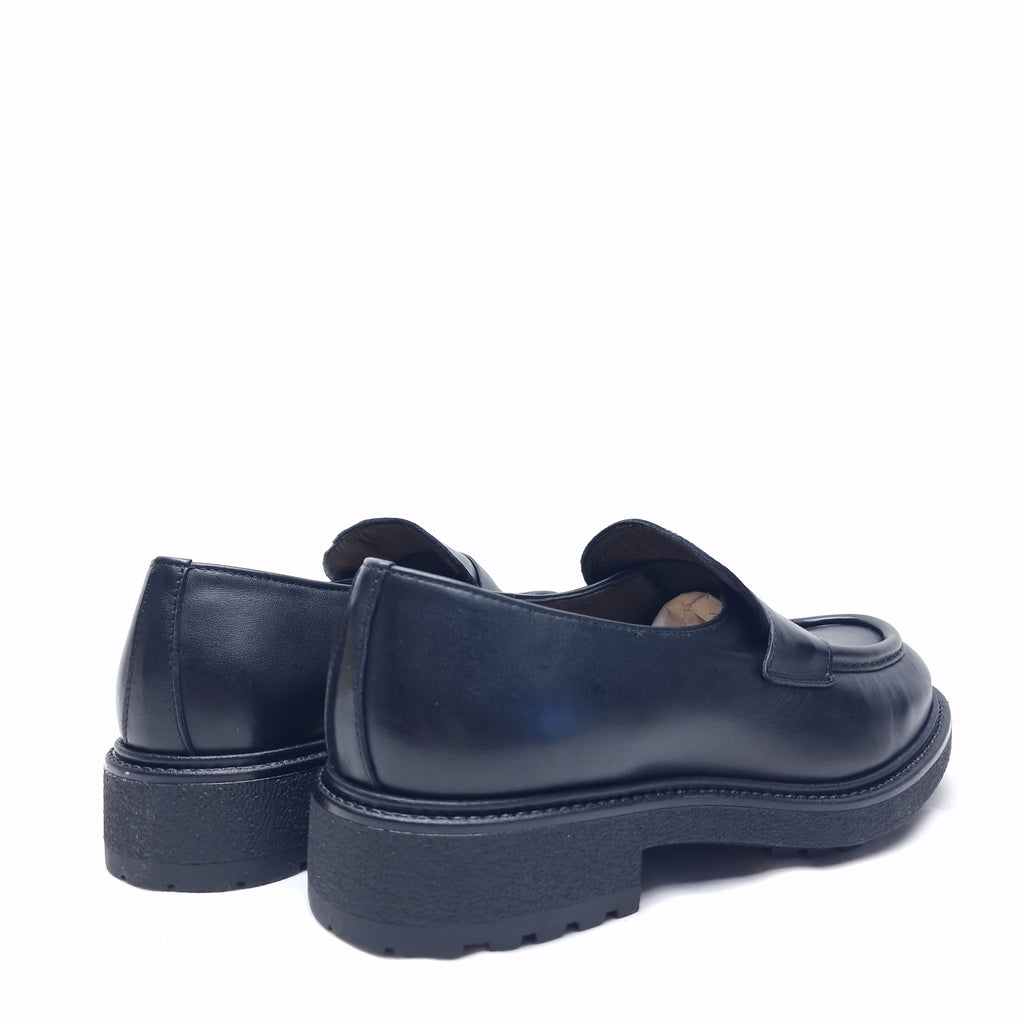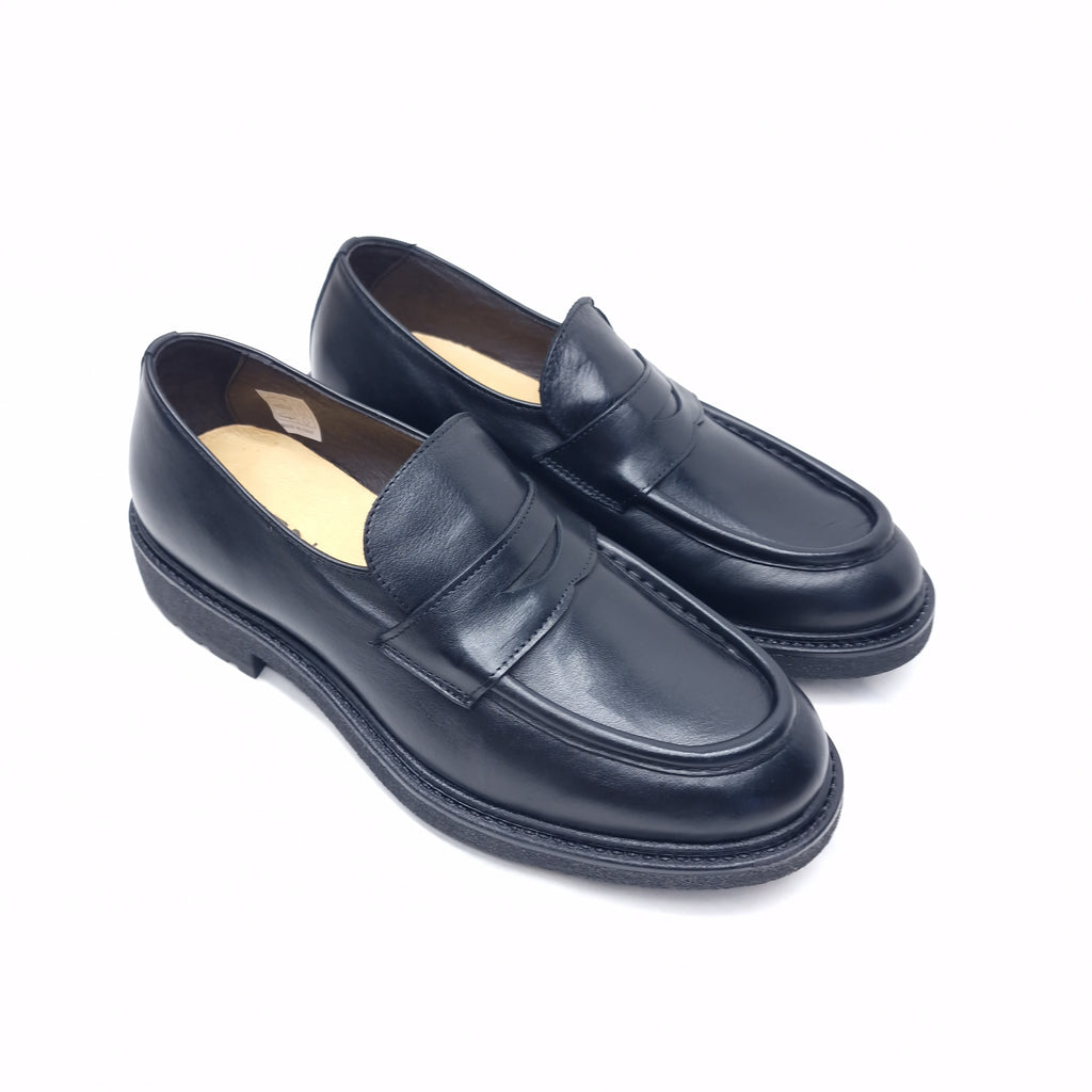 Mocassino college in nappa di pelle, vera pelle interna ed esterna con suola in gomma bottolata vintage; calzata regolare confortevole