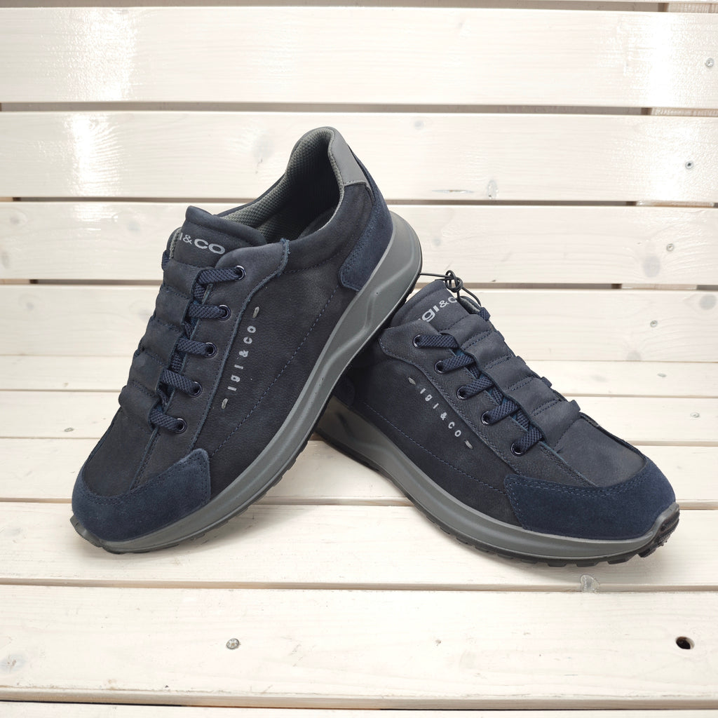 Sneaker in Nubuk con lacci coperti a marchio IGI & CO, soletta estraibile, suola in gomma antiscivolo rialzata sul retro