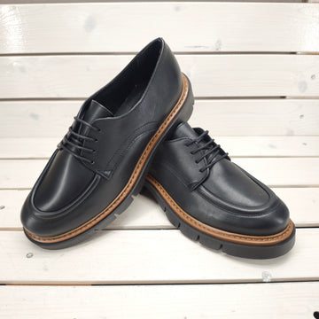 Stringata con vaschetta in vera pelle con guardolo in contrasto ; calzata regolare, suola da 3 cm