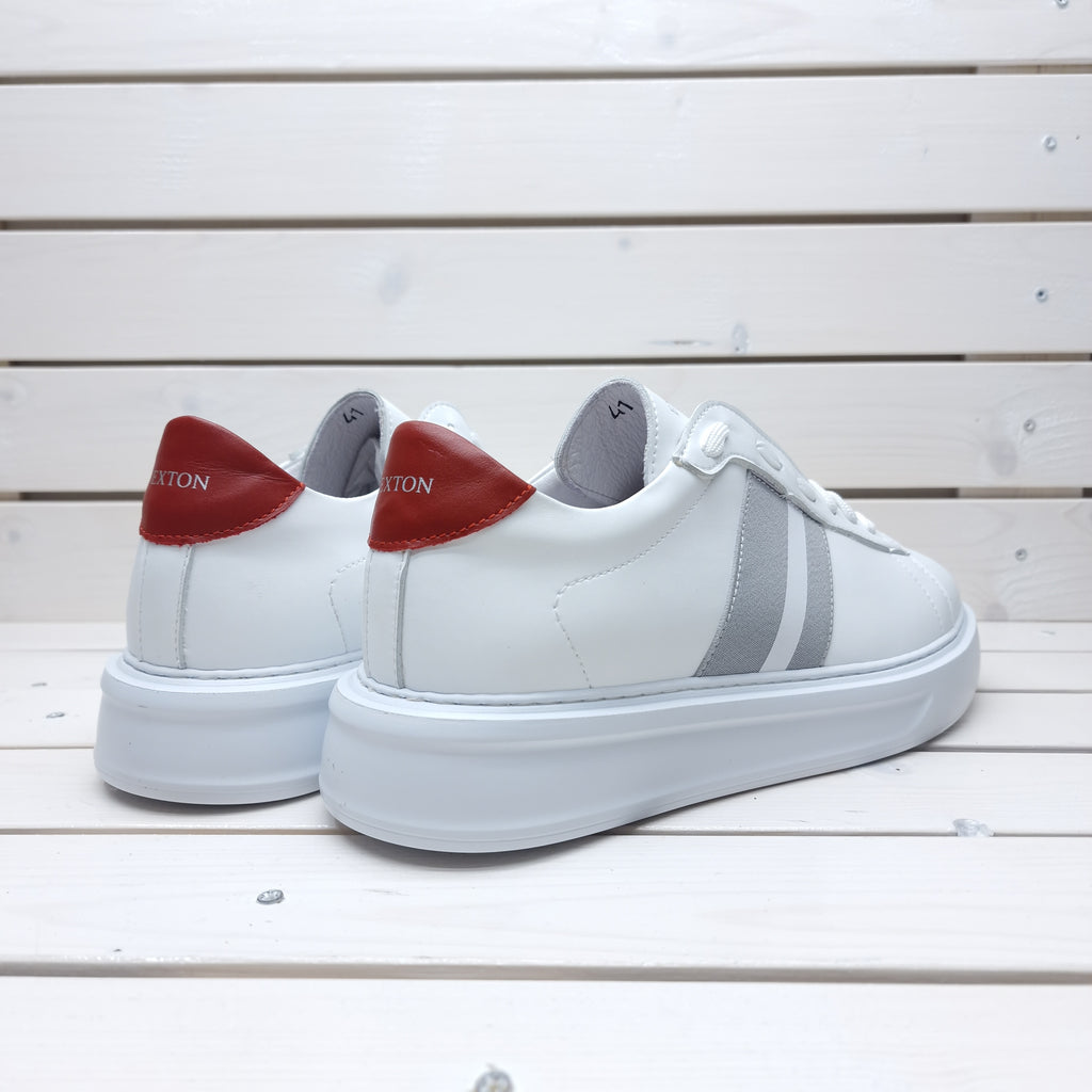 Sneaker a marchio Exton in pelle interna ed esterna con plantare estraibile e suola in gomma antiscivolo: prodotta in Italia da maestri artigiani