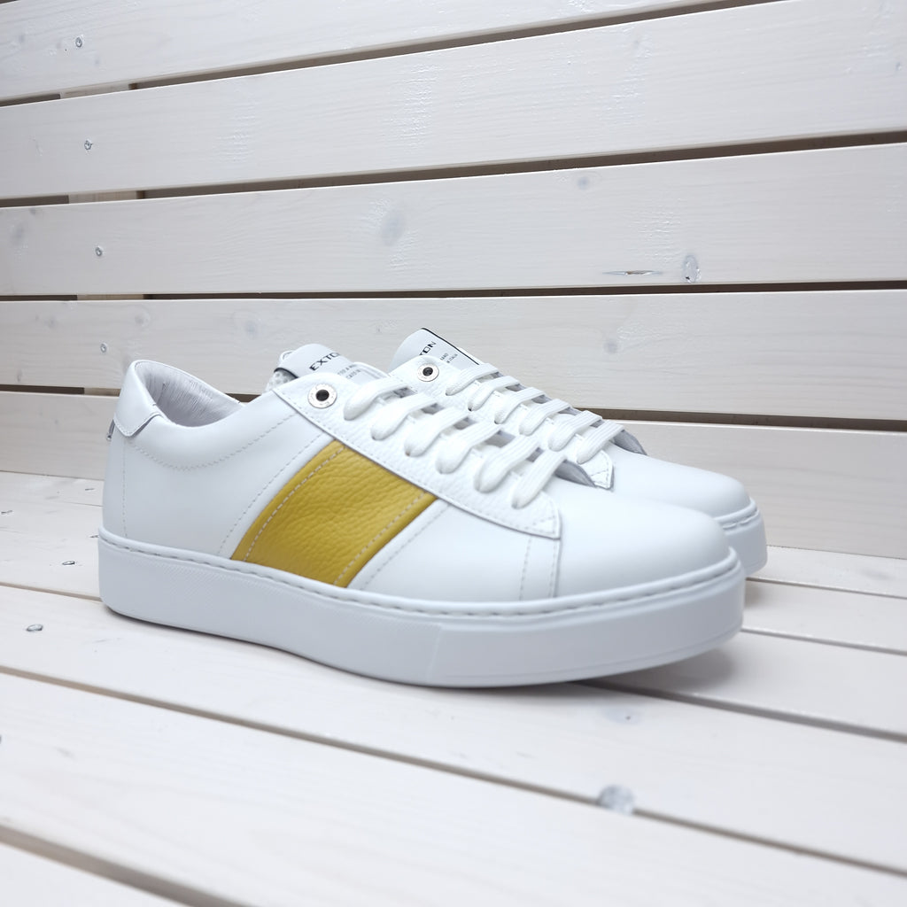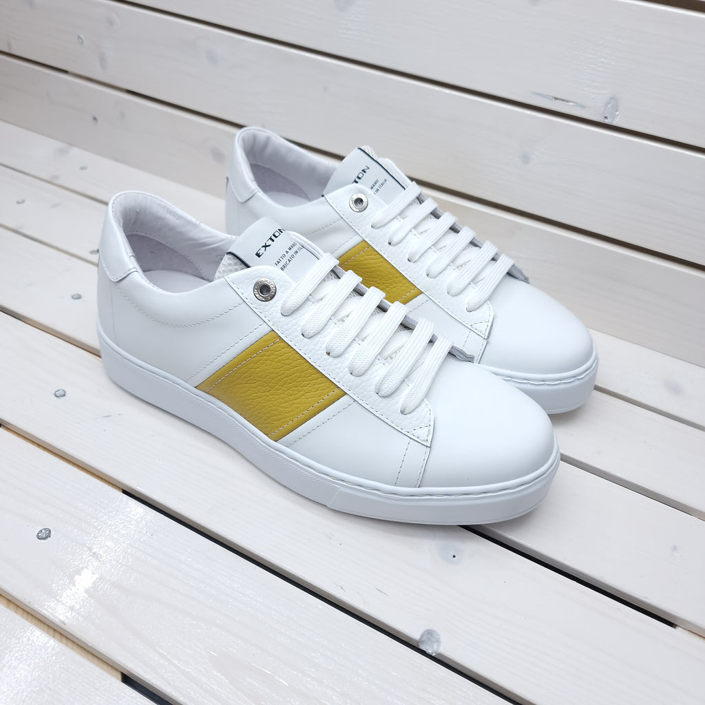 Sneaker a marchio Exton in pelle interna ed esterna con plantare estraibile e suola in gomma antiscivolo: prodotta in Italia da maestri artigiani