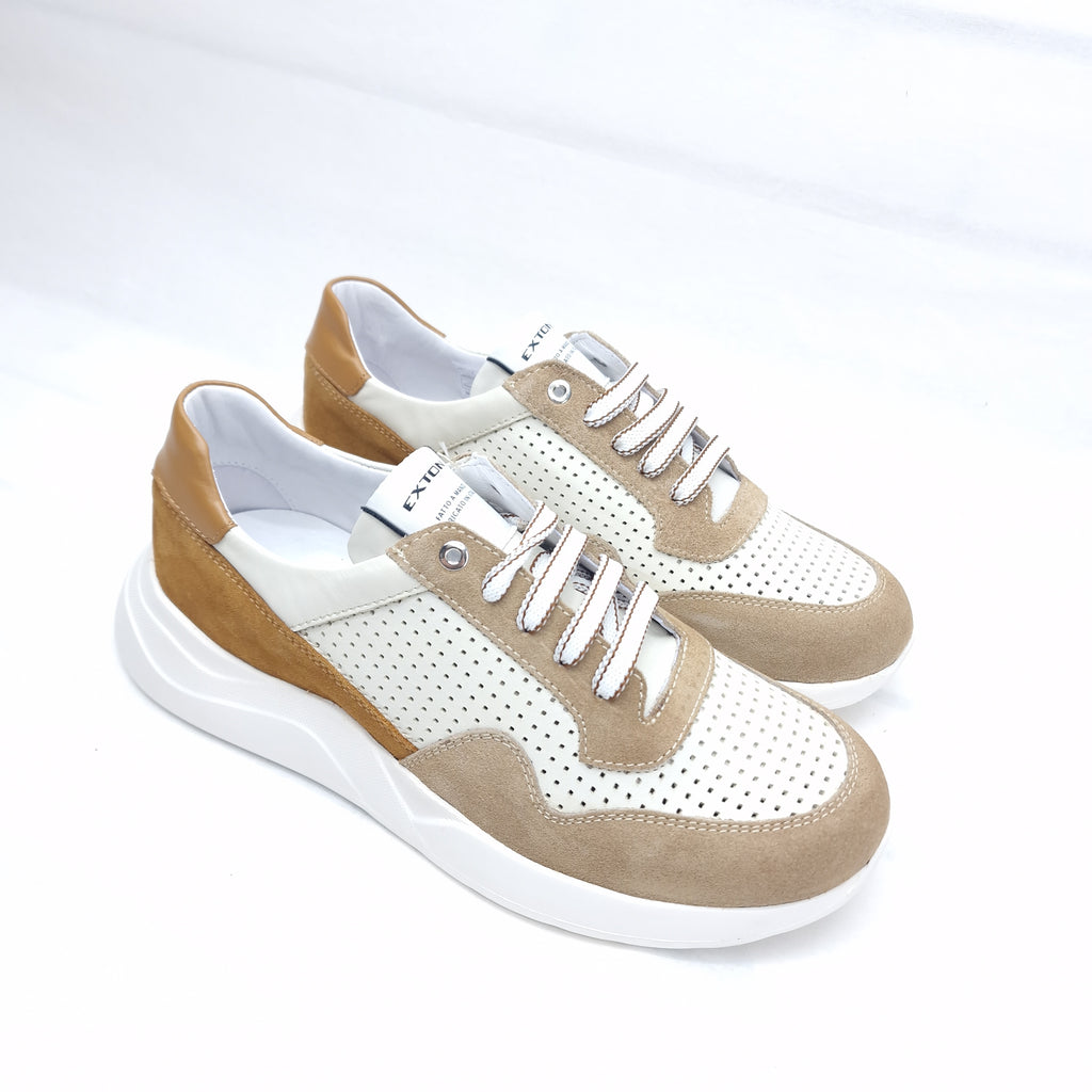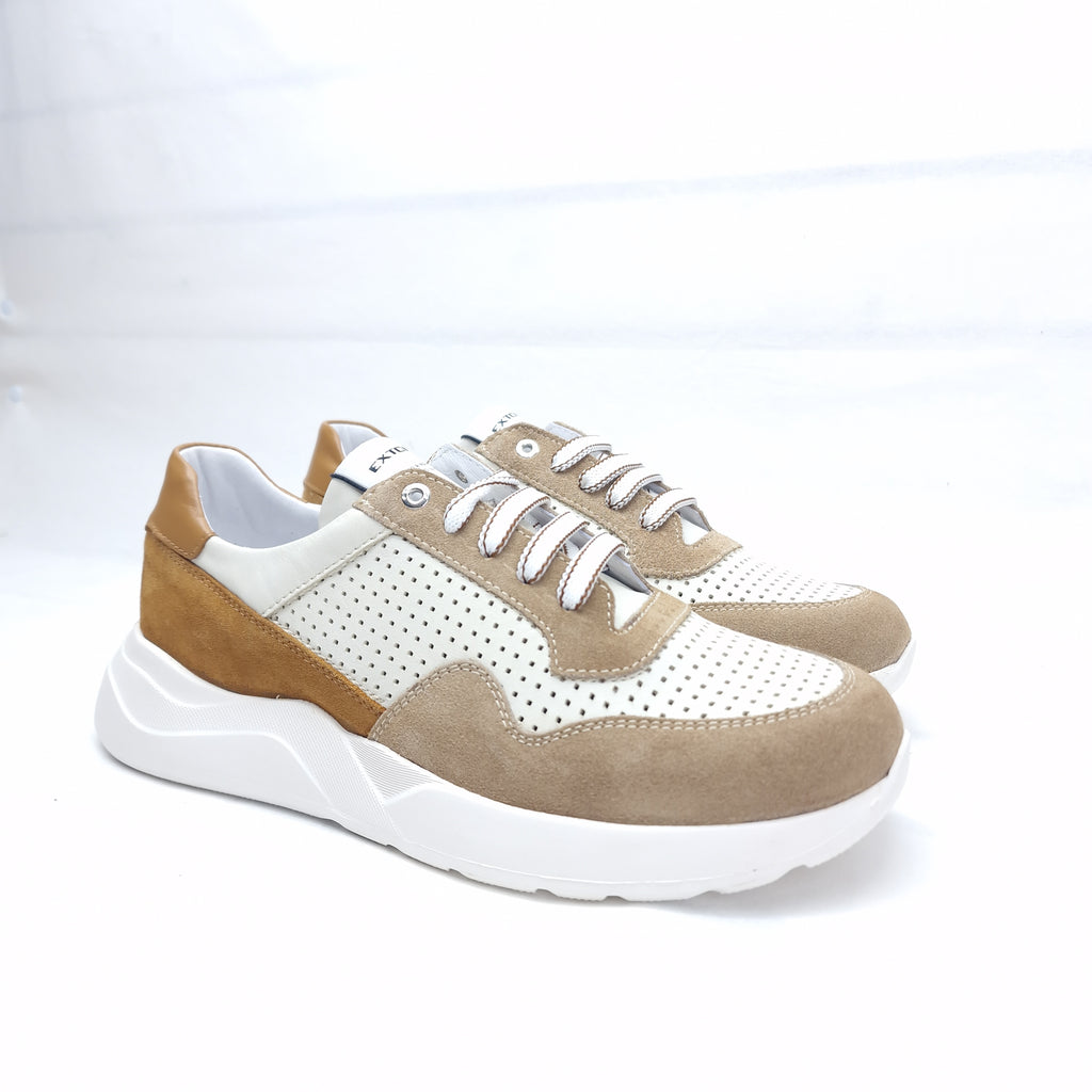 Sneaker con suola rialzata in vera pelle interna ed esterna prodotta in Italia da maestri artigiani