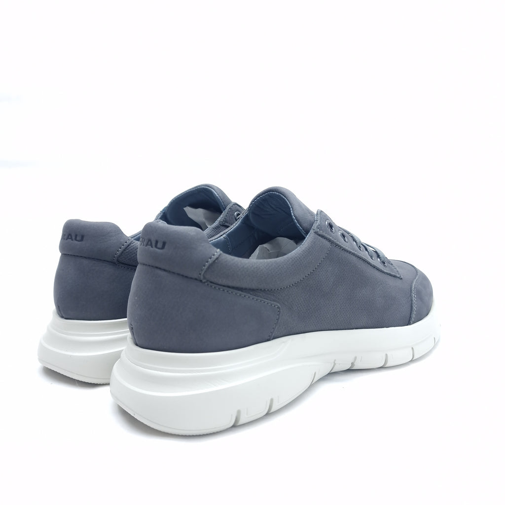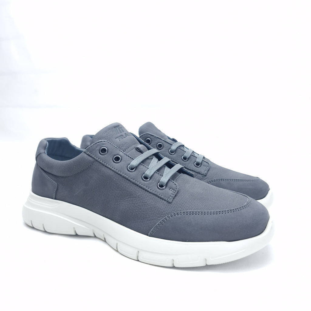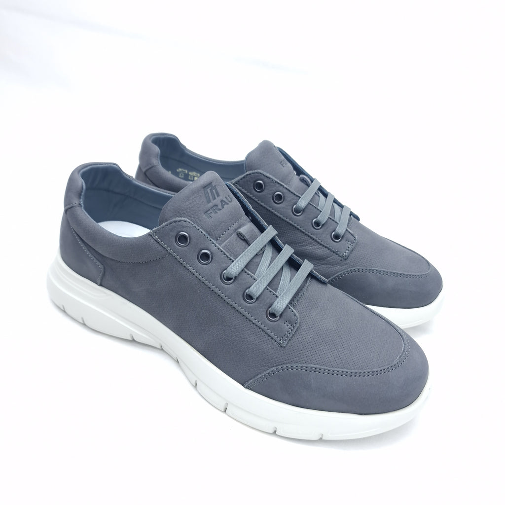 Sneaker in vera pelle sfoderata a marchio Frau, prodotta interamente in Italia da maestri artigiani; suola in gomma antiscivolo superflessibile, plantare estraibile