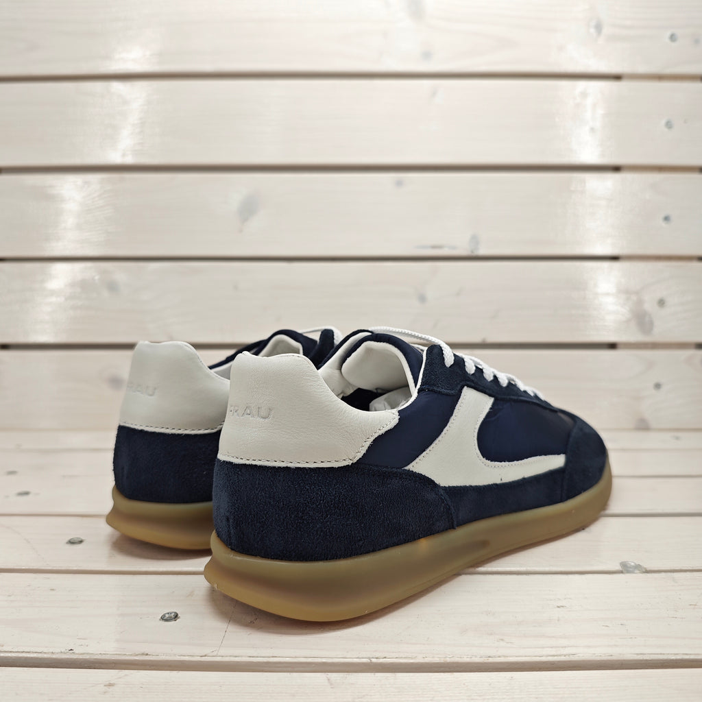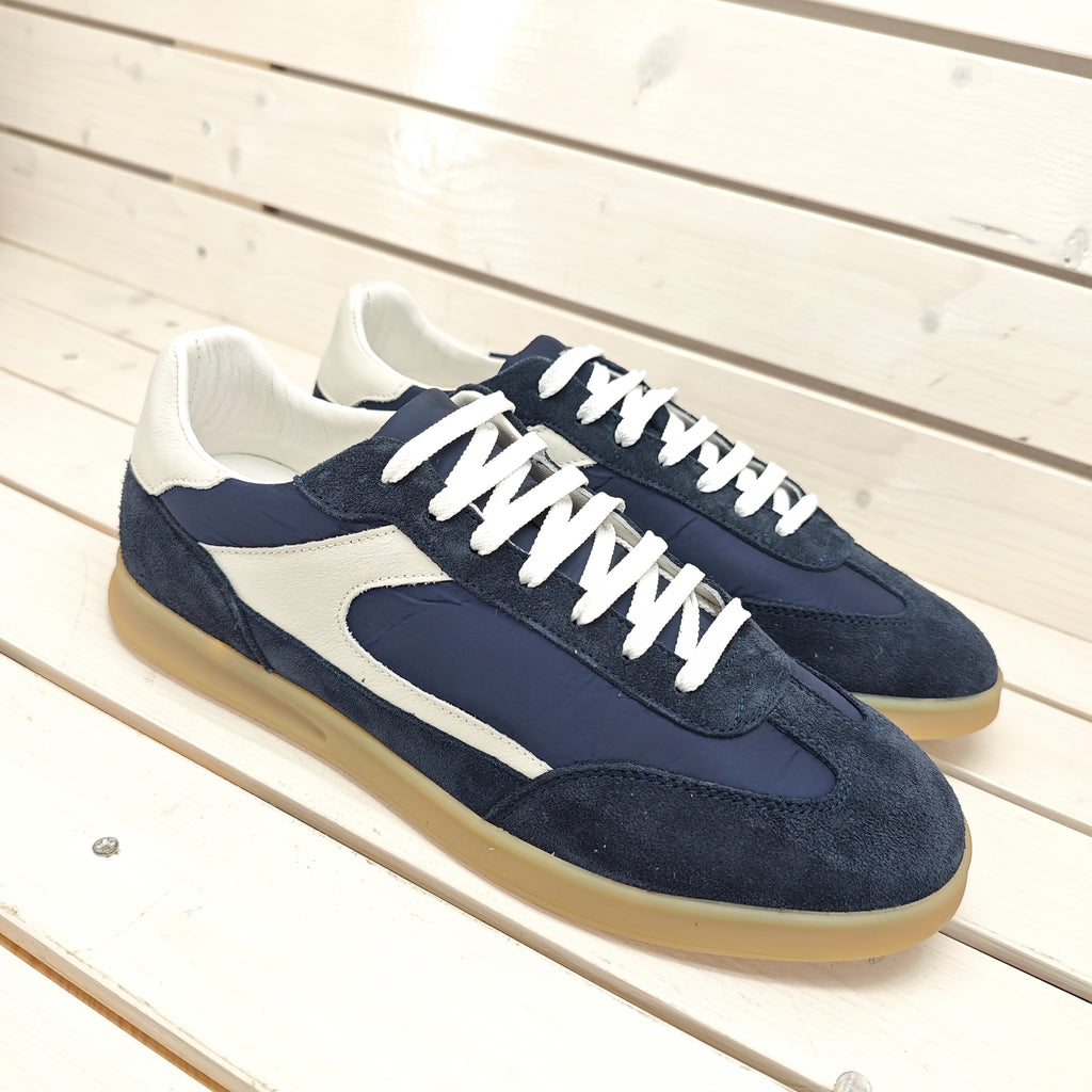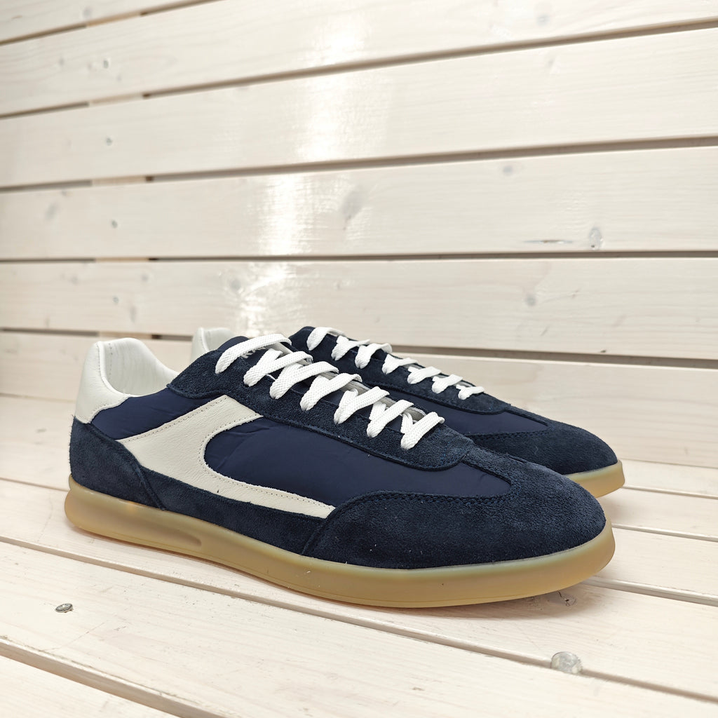 Sneaker in vera pelle a marchio Frau, in camoscio e tessuto tecnico, adatta ai piedi più sensibili; suola in gomma con antiscivolo.