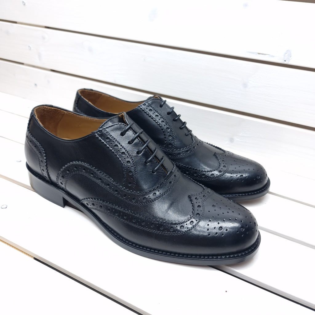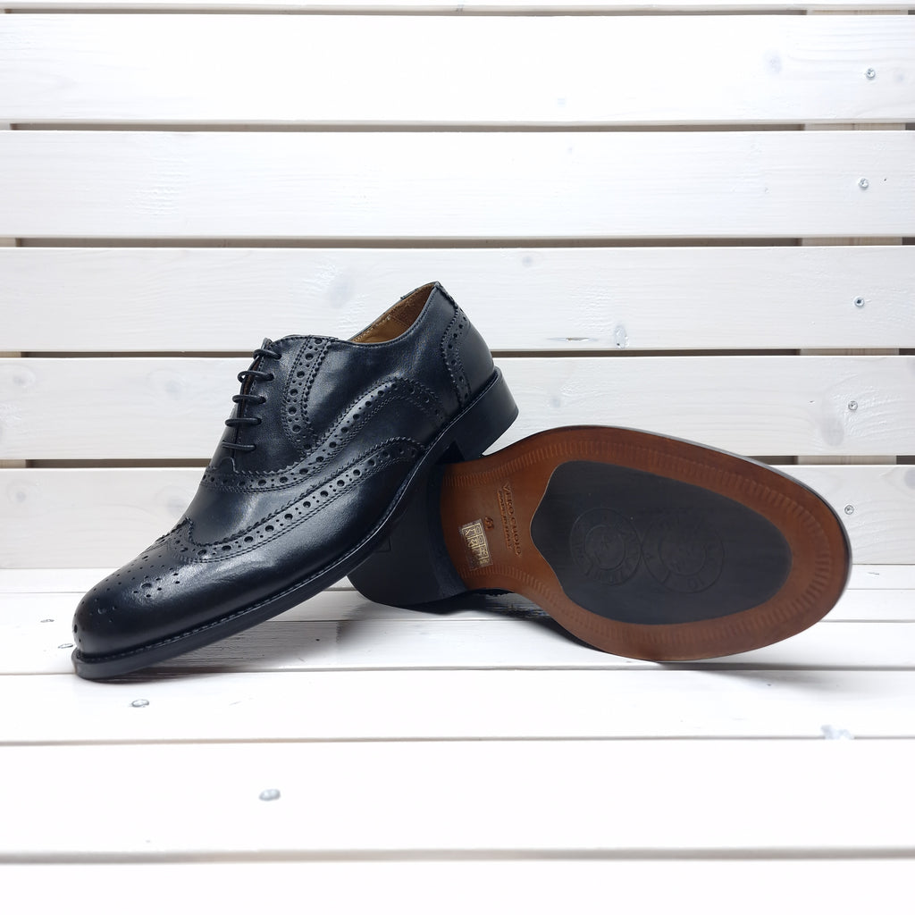Francesina a marchio Exton in pelle interna ed esterna con suola in cuoio e goccia in gomma antiscivolo: prodotta in Italia da maestri artigiani