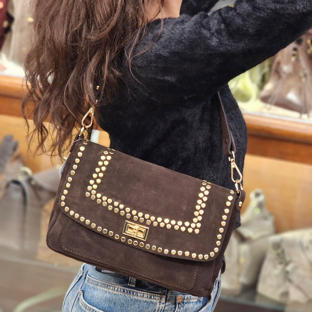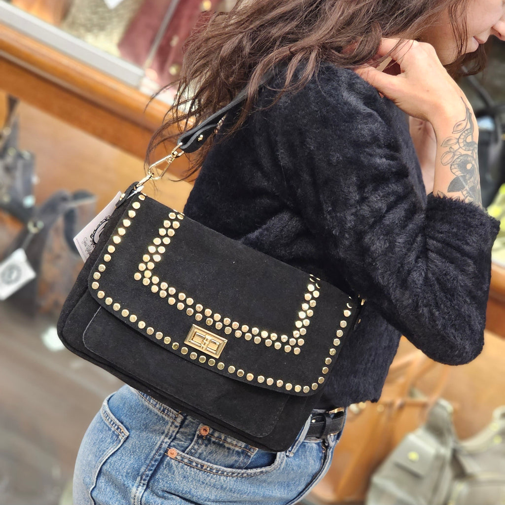 Borsa in vera pelle scamosciata Made in Italy. Comoda chiusura con zip, tasca interna laterale con zip e tracolla sostitutiva regolabile inclusa. Per misure e ulteriori dettagli scrivici direttamente in chat: saremo felici di darti tutte le info!