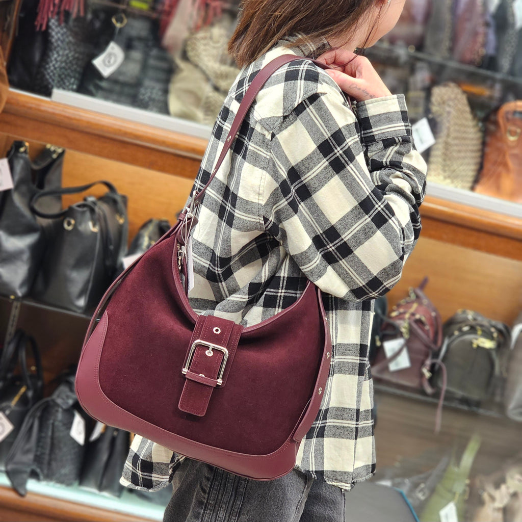 Borsa in vera pelle scamosciata Made in Italy. Chiusura con cerniera e tracolla regolabile tramite fibbia. Per misure e ulteriori dettagli scrivici direttamente in chat: saremo felici di darti tutte le info!