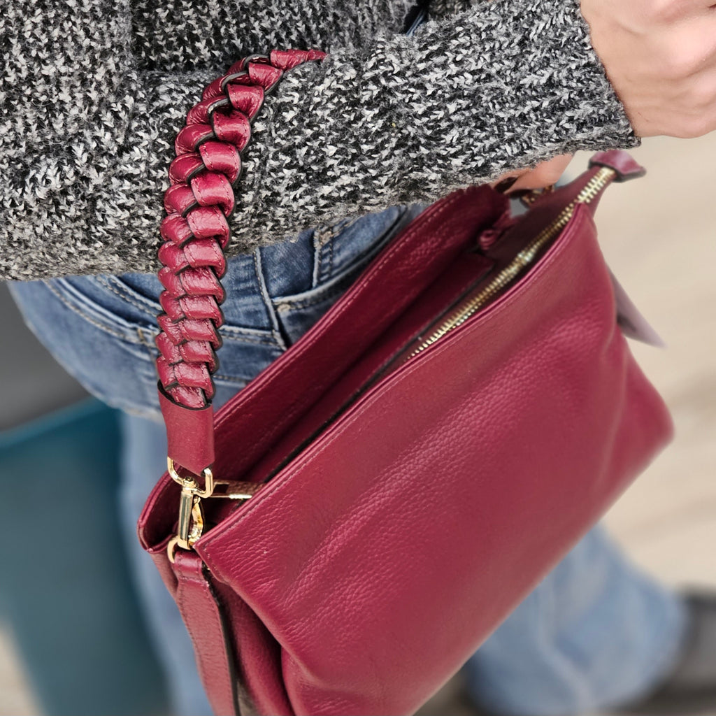Borsa in vera pelle made in italy. Chiusura con cerniera e Interno suddiviso da una comoda zip centrale. Impreziosita dalla maniglia intrecciata e completamente sostituibile in caso di utilizzo a tracolla. La tracolla regolabile è inclusa. 📩 Per misure e ulteriori dettagli scrivici direttamente in chat: saremo felici di darti tutte le info!