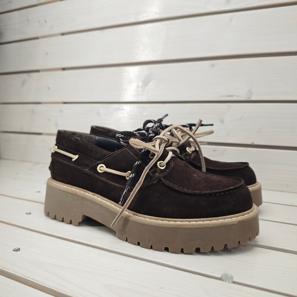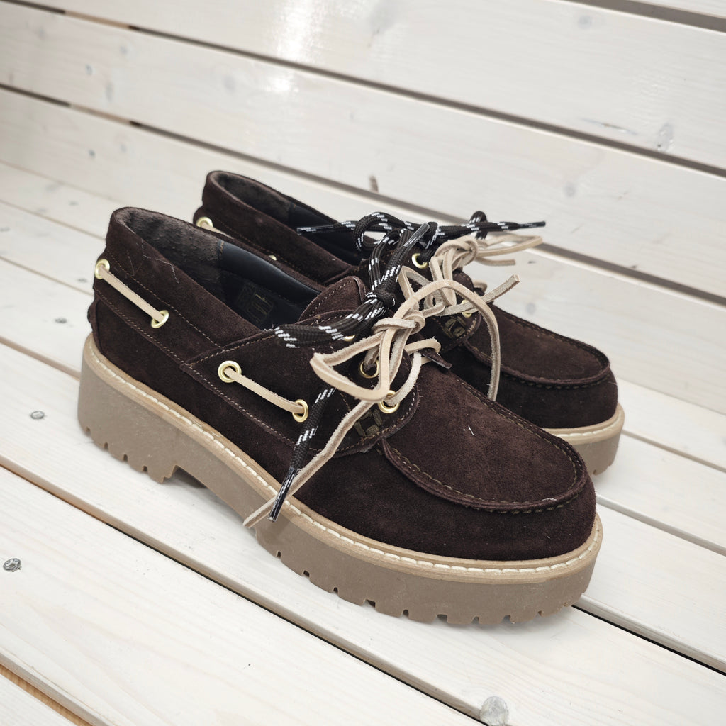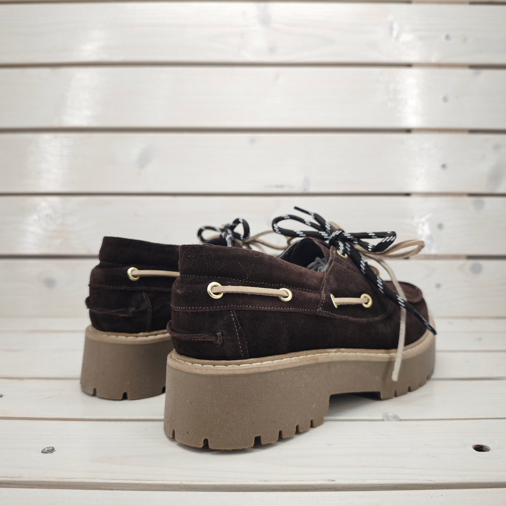 Mocassino vela in camoscio di vitello con suola carrarmato da 4 cm