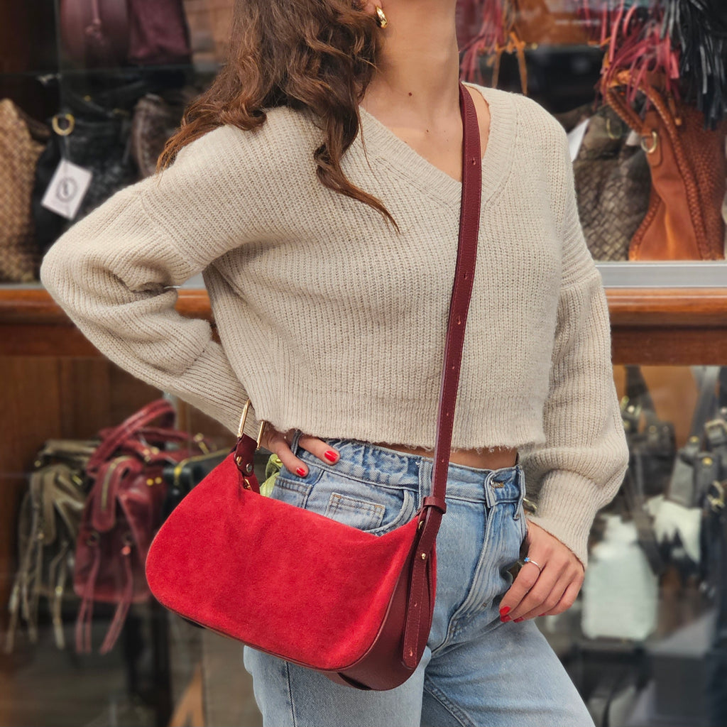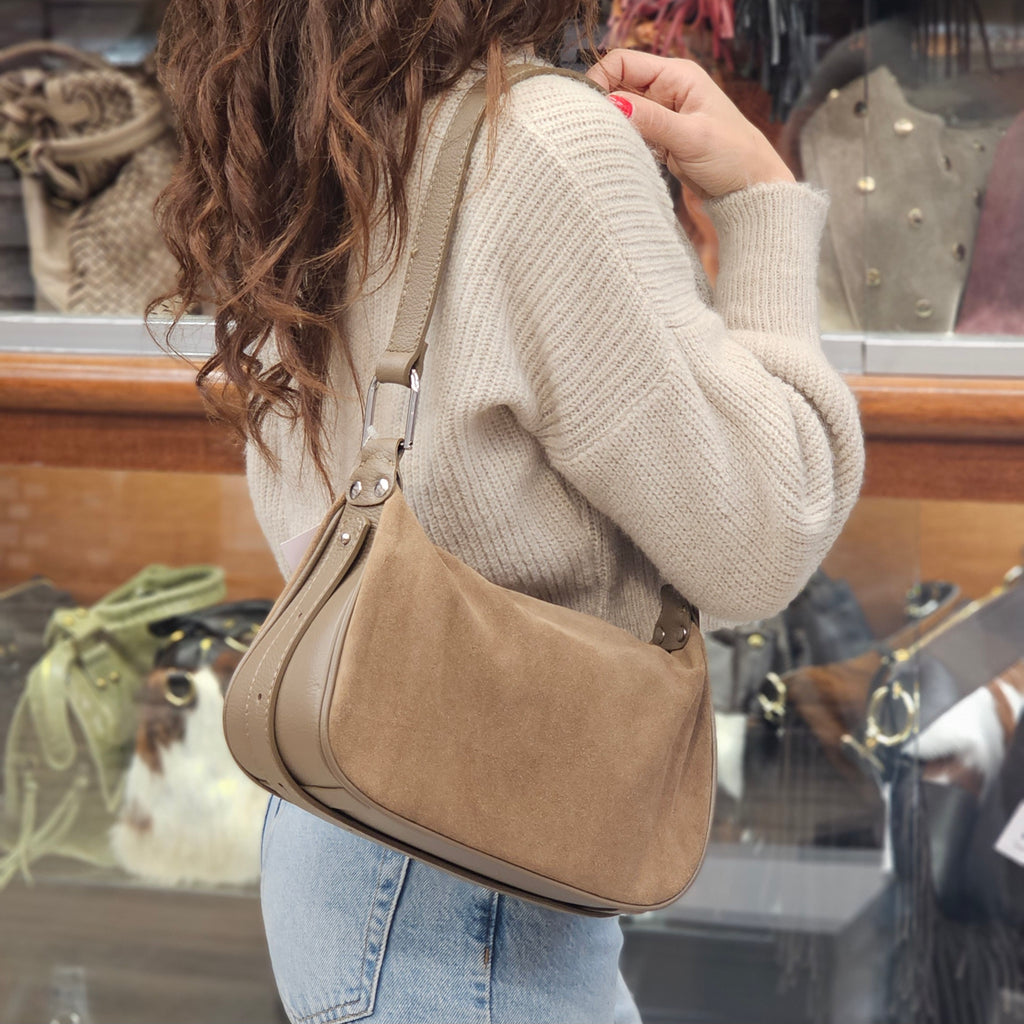 Borsa in vera pelle e camoscio Made in Italy. La maniglia è regolabile e si può allungare ( tramite dei bottoncini ) per poterla portare anche a tracolla. La chiusura è con zip ed è presente anche una tasca interna laterale con cerniera. Per misure e ulteriori dettagli scrivici direttamente in chat: saremo felici di darti tutte le info!