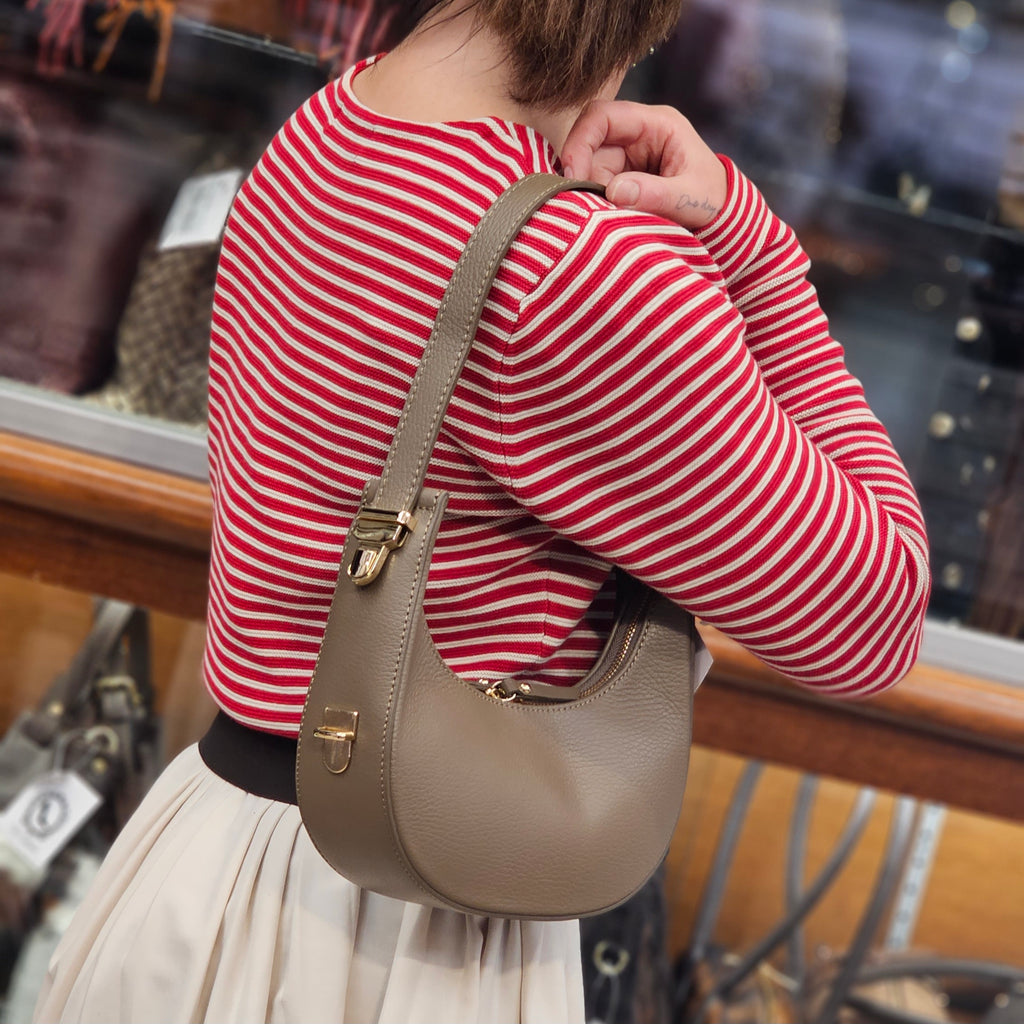 Borsa in vera pelle made in Italy. La chiusura è con cerniera e la borsa presenta una maniglia allungabile tramite i due bottoncini laterali. Per misure e ulteriori dettagli scrivici direttamente in chat: saremo felici di darti tutte le info!