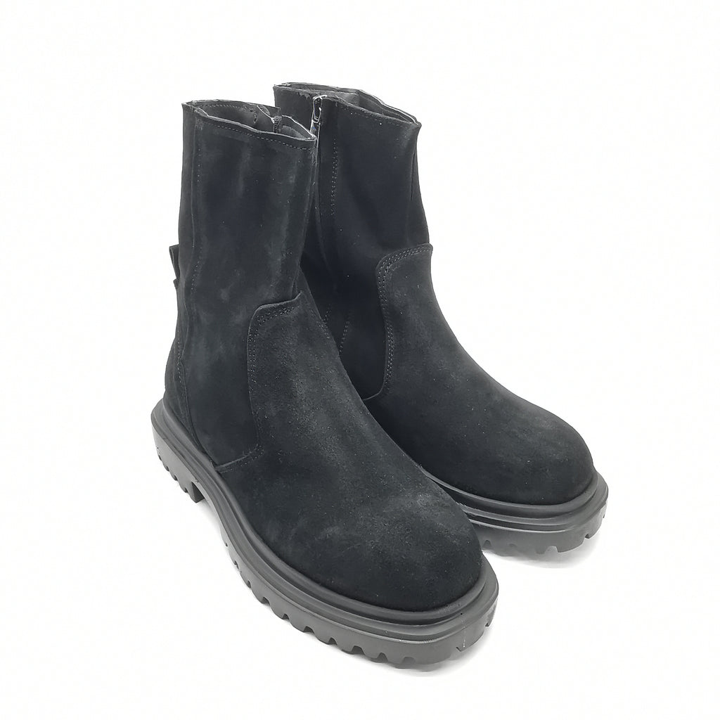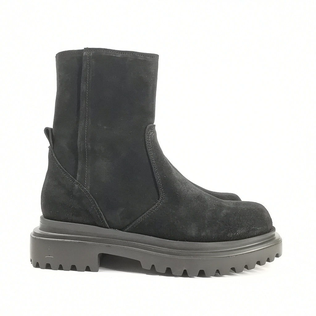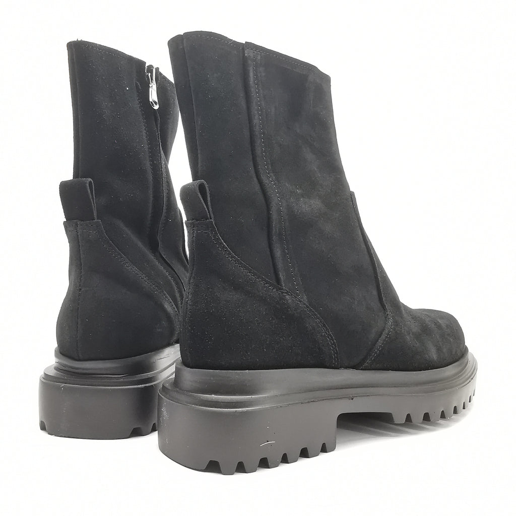 Stivaletto in camoscio nero con suola in gomma platform da 3 cm. f