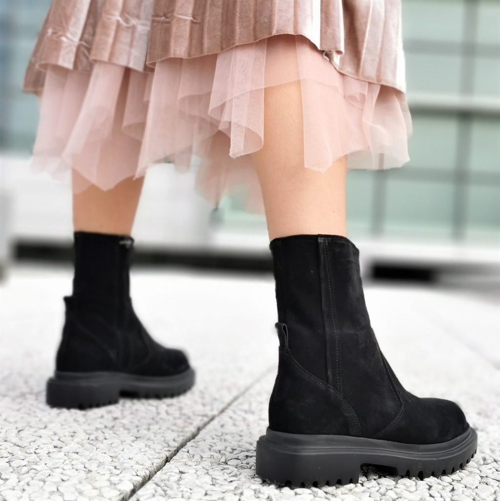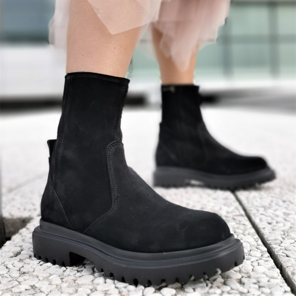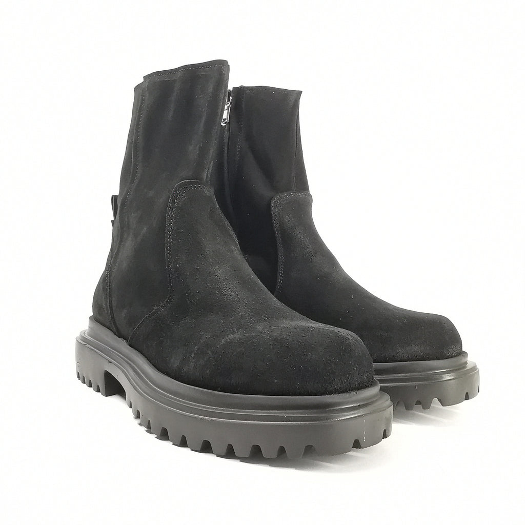 Stivaletto in camoscio nero con suola in gomma platform da 3 cm. f