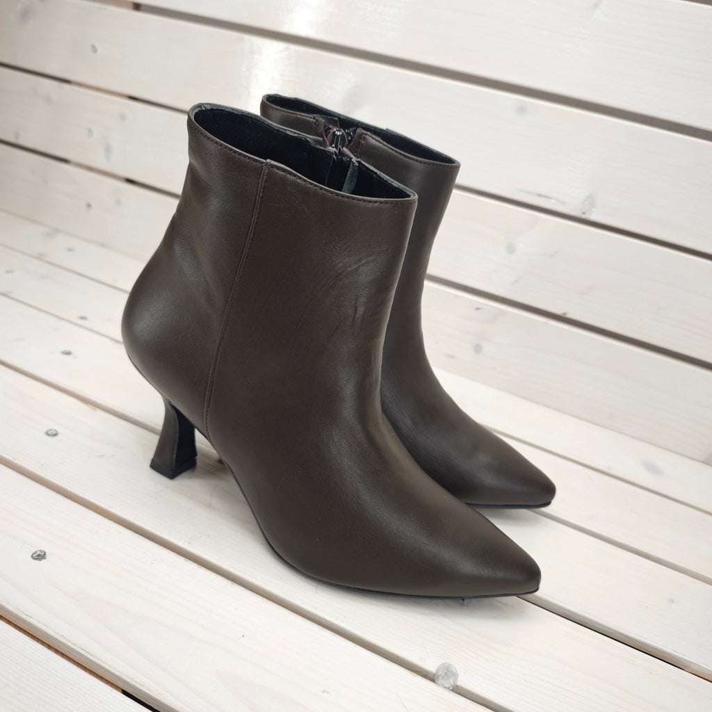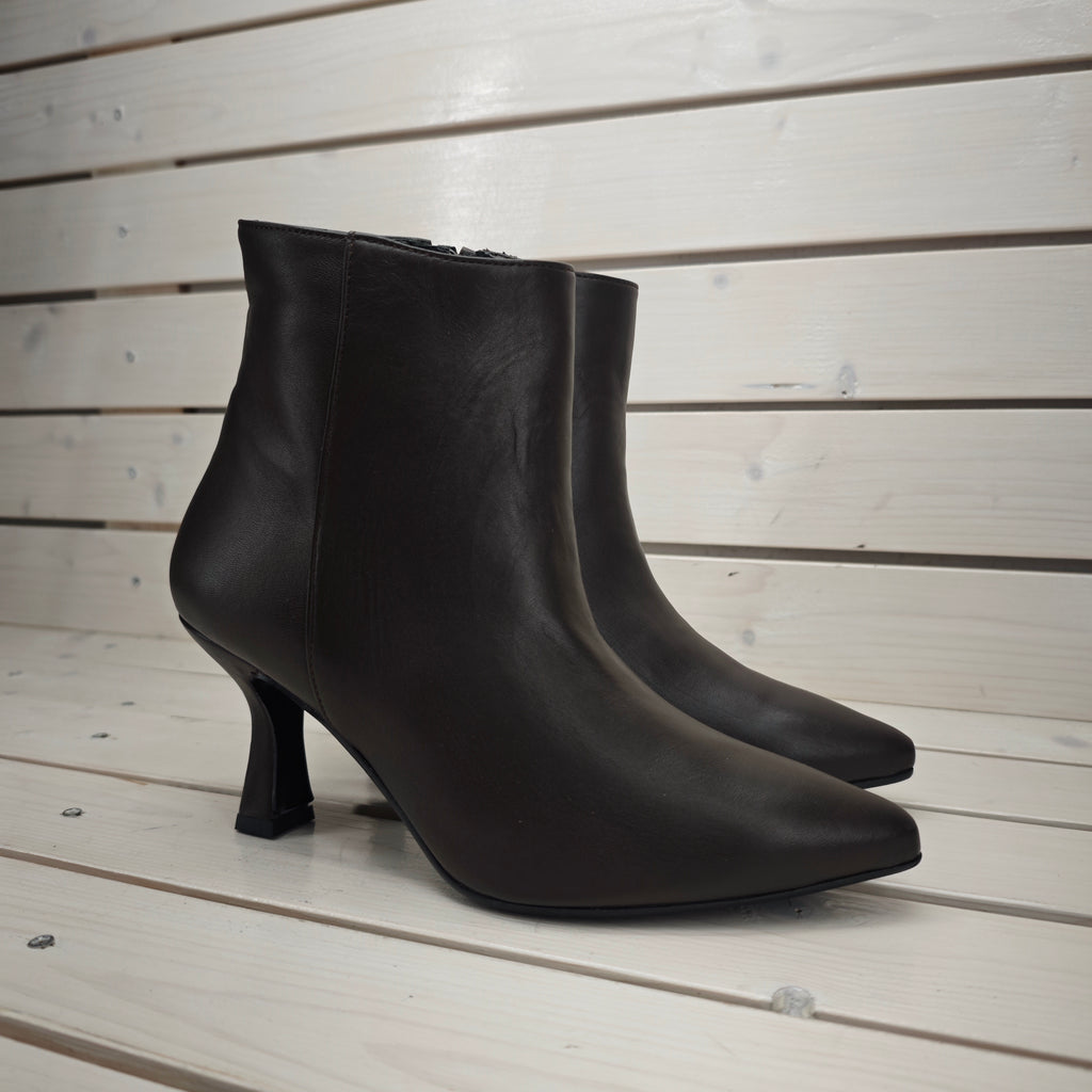 Tronchetto in vera pelle con suola in gomma e tacco 7 cm, con cerniera interna per favorire la calzata.