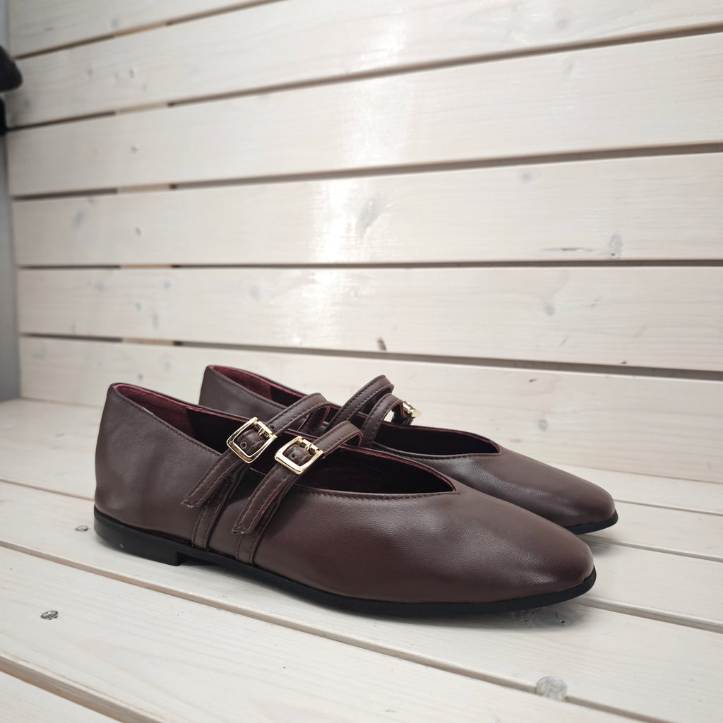 Ballerina in vera pelle interna ed esterna estremamente morbida con laccetti regolabili e suola in gomma antiscivolo